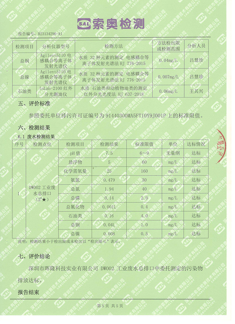 2023年8月廢水檢測(cè)報(bào)告