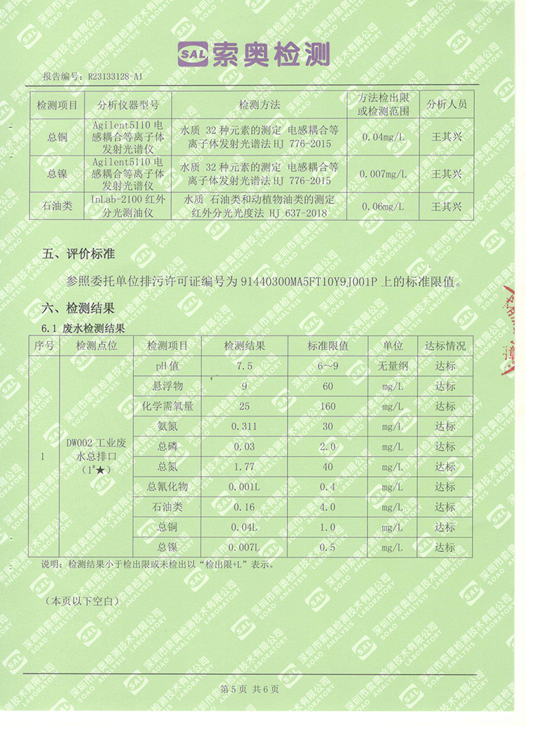 2023年6月廢水檢測報告